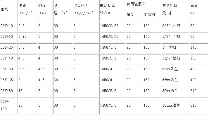 電動隔膜泵性能參數(shù)表