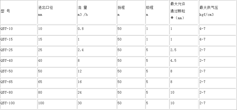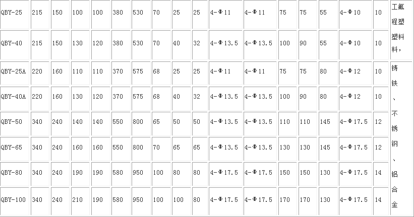 QBY氣動隔膜泵性能參數(shù)