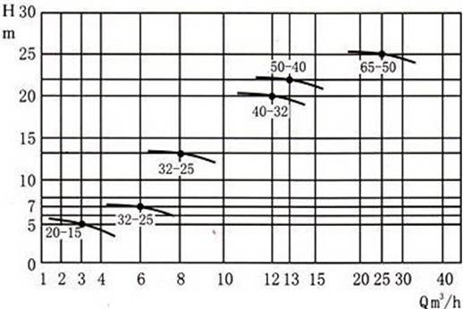 ■ FP型增強(qiáng)聚丙烯離心泵┃塑料離心泵性能曲線: